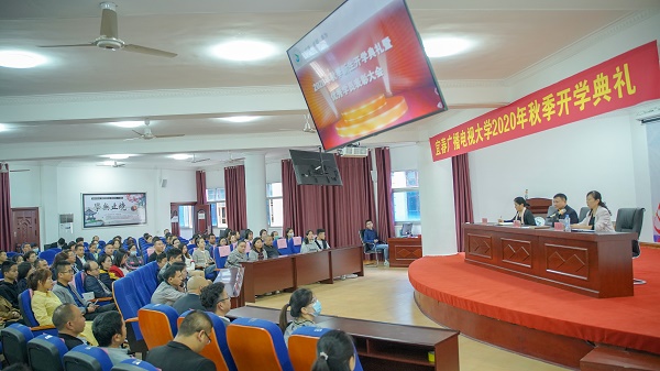10月17日上午,宜春广播电视大学2020秋新生开学典礼暨优秀学员表彰大会在综合大楼学术报告厅隆重举行。宜春电大校党委书记罗咏、校纪委书记陈曦雯,全体教职工、受表彰的学员代表及2020年秋季部分新生代表参加典礼。会议由宜春电大党委委员、副校长刘蓓洁主持。