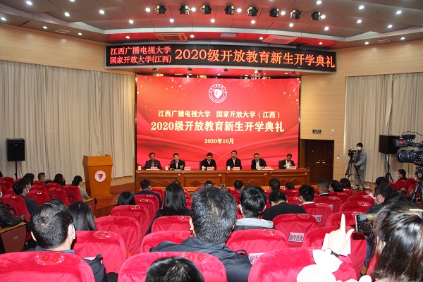 为进一步贯彻落实习近平总书记视察江西时关于“推进红色基因传承”的重要讲话精神,落实立德树人根本任务,持续推进“扎根红土地,建功新时代”邀约行动,加强全省电大系统文化建设,增强开放教育学生的入学仪式感、自豪感和归属感,提高学生对开放教育的认知度,上好新生开学第一课,10月25日上午,学校在青山湖校区学术报告厅设主会场,在各市、县级电大设分会场,基于现代信息技术,通过江西省终身学习平台,在全省电大系统内以协同联动的方式隆重举行了江西广播电视大学、国家开放大学(江西分部)2020级开放教育新生开学典礼。