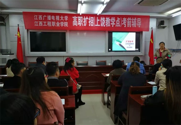 为了帮助已报考江西广播电视大学、江西工程职业学院(上饶电大教学点)的考生充分准备入学专项测试,上饶电大于2020年11月21日-22日先后在市电大校本部、鄱阳县、余干县精心组织了3场考前辅导教学活动。