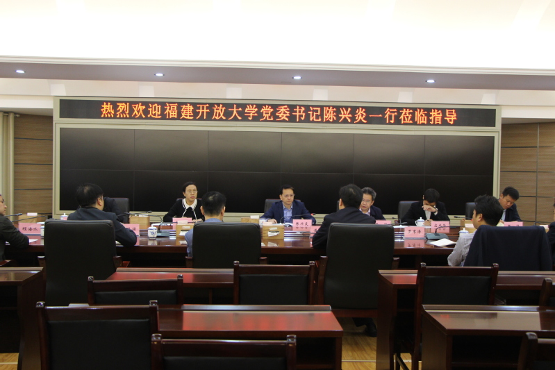 4月28日上午,福建开放大学党委书记一行6人来我校访问交流。校党委副书记、校长黄平槐,党委副书记邓文君热情接待了来宾,并进行了深入座谈。