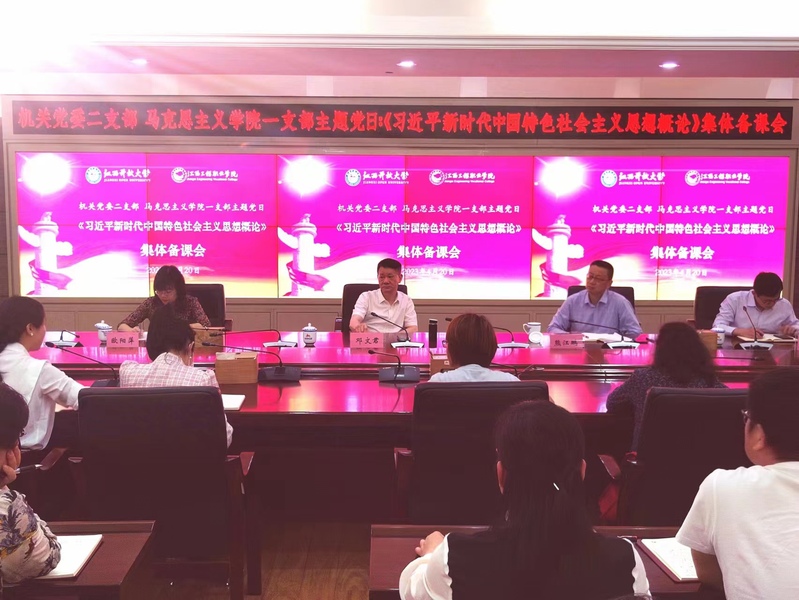 4月19日下午,机关党委二支部马克思主义学院一支部联合开展了“《习近平新时代中国特色社会主义思想概论》集体备课”主题党日活动。校党委副书记邓文君出席并讲话,两个支部的全体党员参加。