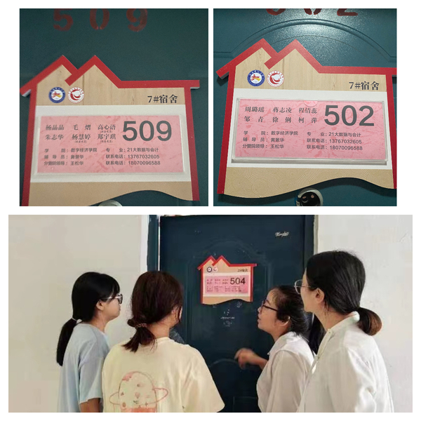 为全面践行“服务就在身边,矛盾不出校园”的理念,提升学生宿舍管理育人、思政育人、服务育人功能,数字经济学院对学生宿舍门牌实施亮化公示管理,做到学生“有呼即应、有诉必应”,全身心呵护学生健康成长。