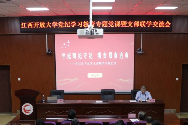 4月26日,学校在西湖校区学术报告厅开展党纪学习教育专题党课暨支部联学活动,校党委副书记、校长黄平槐,校党委委员、副校长徐光兵参加活动并讲授纪律党课。机关党委五支部、七支部、八支部、十支部、十一支部全体党员和各专业学院党政主要负责人、全体辅导员参加联学活动。校党委委员、党委宣传部长张明主持联学活动。