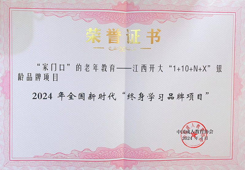 近日,在2024年全民终身学习活动周全国总开幕式上,我校推荐的“家门口”的老年教育——江西开大“1+10+N+X”银龄品牌项目荣获2024年全国新时代“终身学习品牌项目”,这是我校首次入选国家级“终身学习品牌项目”。