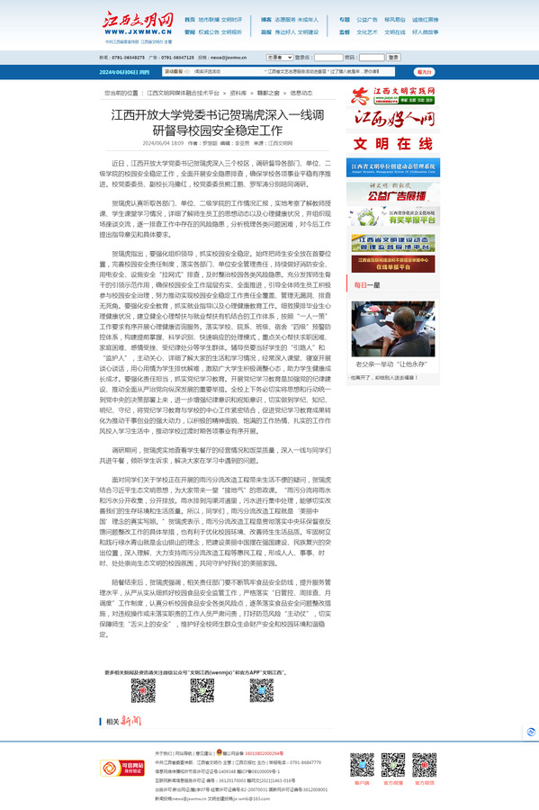 近日,球王会体育党委书记贺瑞虎深入三个校区,调研督导各部门、单位、二级学院的校园安全稳定工作,全面开展安全隐患排查,确保学校各项事业平稳有序推进。校党委委员、副校长冯豫红,校党委委员熊江鹏、罗军涛分别陪同调研。