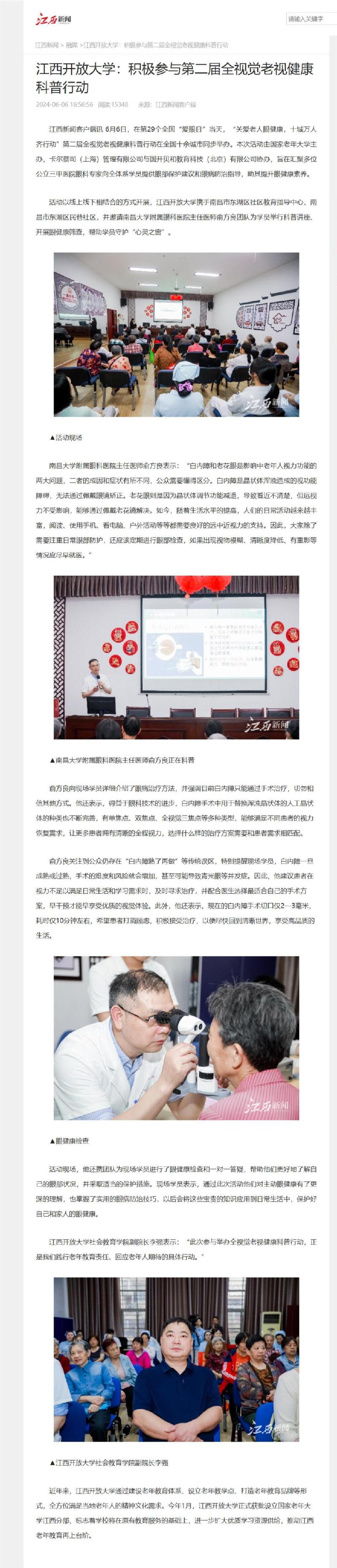 江西新闻:球王会体育积极参与第二届全视觉老视健康科普行动