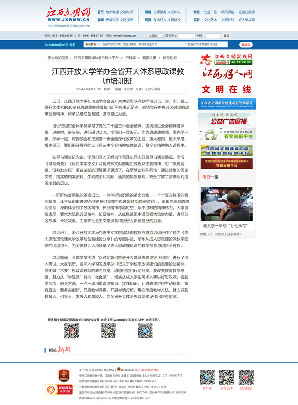 近日,球王会体育在瑞金举办全省开大体系思政课教师培训班。省、市、县三级开大体系的30多名思政课教师循着习近平总书记足迹,感悟党在中央苏区时期的改革创新精神,传承弘扬红色基因,汲取奋进力量。