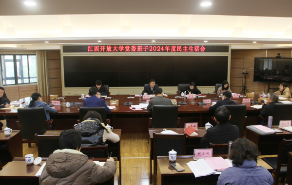 按照省纪委和省委组织部部署要求,根据学校党委班子民主生活会工作方案,2月24日,学校党委班子在东湖校区行政楼召开了2024年度民主生活会。督导组组长、省委教育工委委员、省教育厅副厅长王勇一行到会指导。校党委书记贺瑞虎主持会议并作总结讲话,全体党委班子成员参加会议,部分中层干部、教师代表、民主党派代表列席会议。