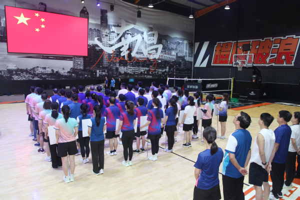 赛前,全体参赛队员、裁判员与观众面向国旗,齐声高唱国歌。贺瑞虎作赛前动员讲话,他鼓励参赛队员们轻装上阵、享受比赛,以良好的心态和饱满的状态投入竞技,将赛场上激发出来的团队协作精神转化为强大的学习动力和工作热情,融入到日常的学习、生活和工作中去。