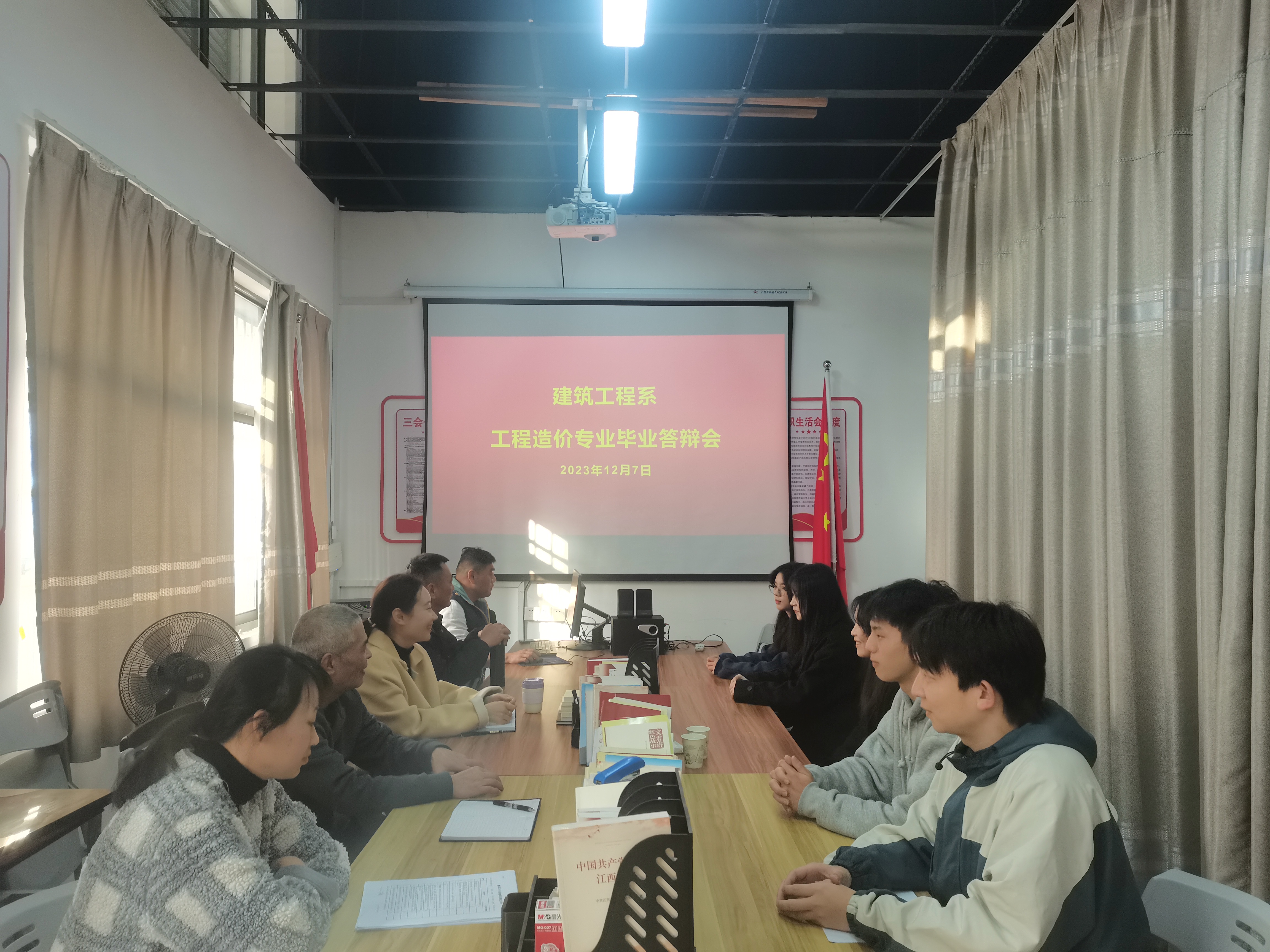 2023年12月7日,城乡发展学院建筑工程系在工程造价工作室顺利举行了2021级毕业生优秀毕业设计答辩工作,本次毕业答辩工作也是建筑工程系本周教研活动的最重要内容。建筑工程系全体专职教师、承担毕业设计指导任务的指导老师和2021级毕业生参加了此次毕业设计答辩。本次答辩共设2个答辩小组,成欣、付颖、单人为、俞信平和胡青青老师组成工程造价专业的毕业答辩小组委员会,其中成欣老师担任答辩组长;孙春辉、章驰、朱光情、邵慧甫和吴志强老师组成建筑工程技术专业和建设工程管理专业的毕业答辩小组委员会,其中孙春辉老师担任答辩组长。