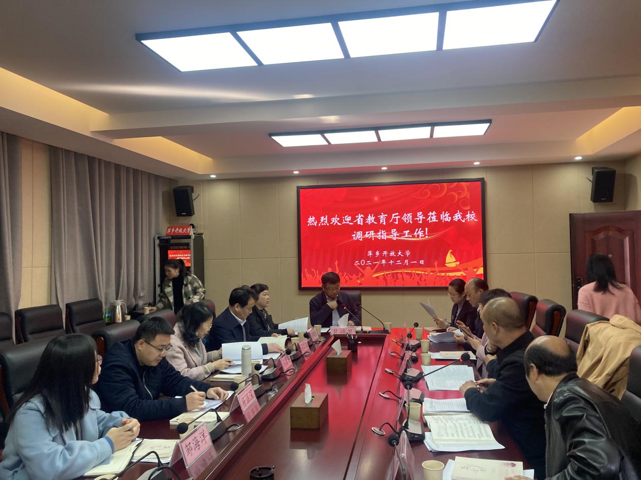 12月1日,校党委委员、副校长冯豫红陪同江西省委教育工委委员、江西省教育厅副厅长裴鸿卫、职成处处长汤泾洪、二级调研员杨春年、省农业农村厅科教处副处长刘凯等一行10人赴萍乡开放大学检查指导2021年江西省全民活动周开幕式筹备情况。萍乡市人民政府副秘书长刘敏,萍乡市教育局局长李奭萍、副局长李敏,萍乡开放大学领导班子随同调研。